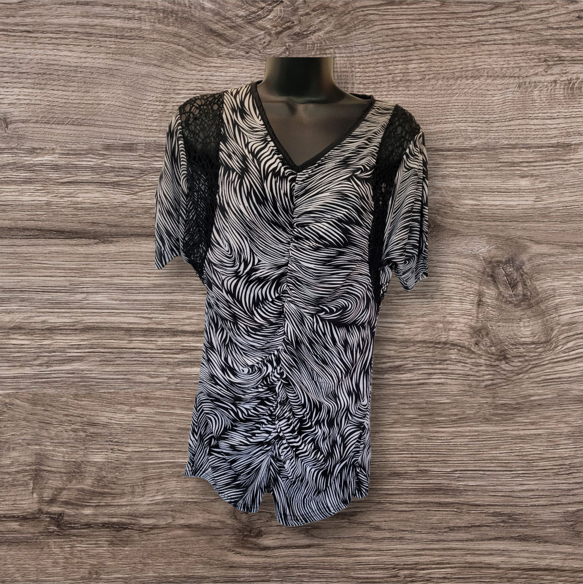 *Be it casual outing or a formal event V Neck Blouse offer's effortless style along with versatility, the V neckline and short sleeve very beautiful blouse with black & white design and network on Boths shoulder.