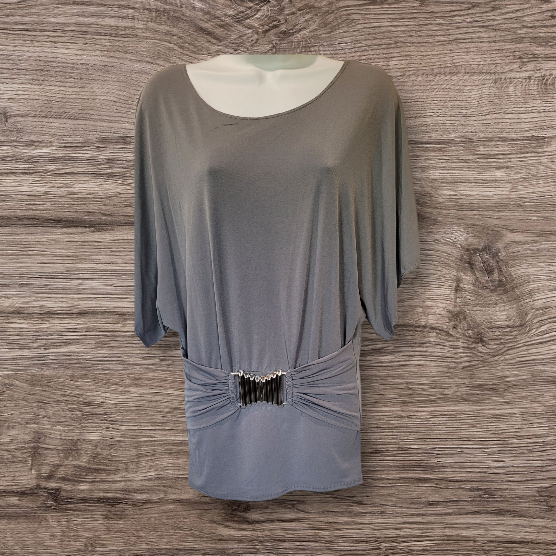 This Belle Amie short sleeve summer top combines casual comfort with subtle style in a versatile gray hue. Crafted for breathability and ease, it offers a lightweight fit ideal for warm weather. Its timeless design makes it a reliable choice for effortless layering or standalone wear, perfect for any summer wardrobe seeking both function and understated elegance.
